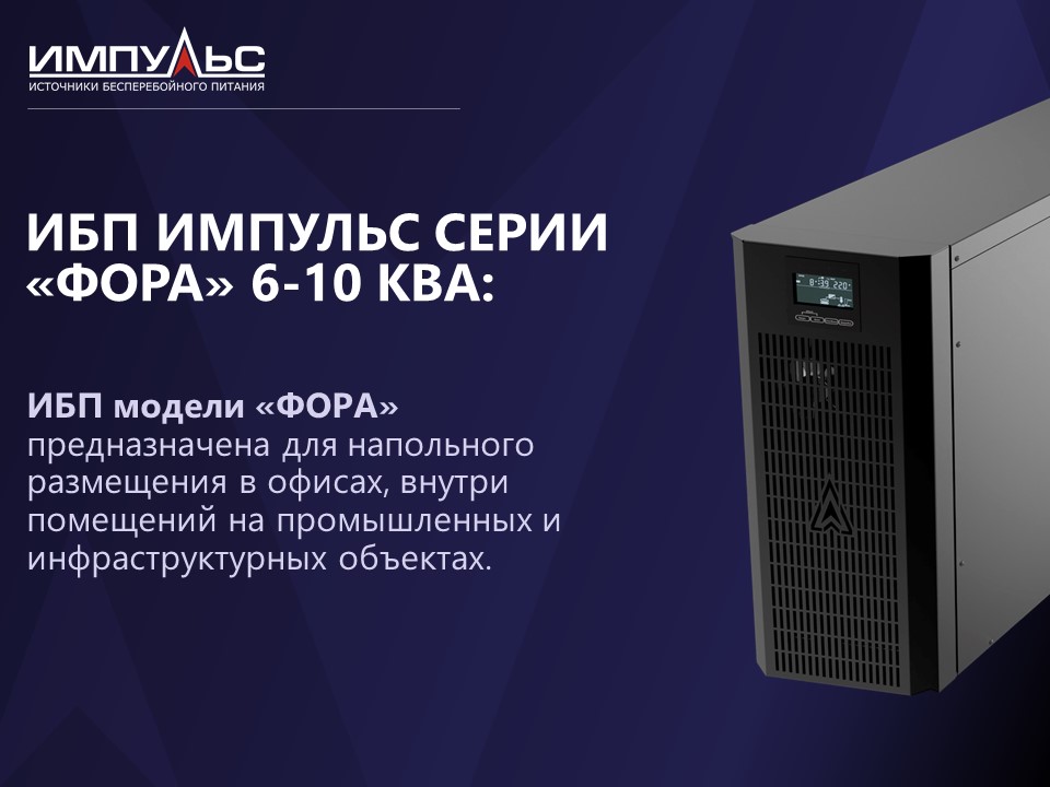 Компания «Системотехника» представила обновлённую линейку источников бесперебойного питания серии Импульс «ФОРВАРД» и «ФОРА» мощностью 6–10 кВА. Новые модели разработаны с учётом современных требований к резервированию питания: расширены возможности управления, улучшена интеграция с ИТ-инфраструктурой и усилена защита оборудования в тяжёлых условиях эксплуатации. Все изделия полностью производятся в России, что обеспечивает стабильное качество, быструю техническую поддержку и возможность оперативной адаптации под запросы заказчиков.
