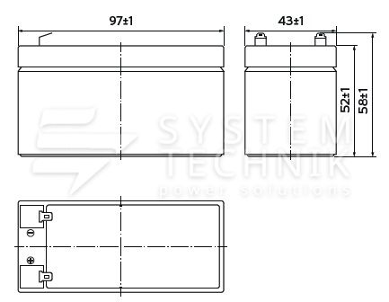- Срок хранения без подзаряда: 6 мес. при 25°C;