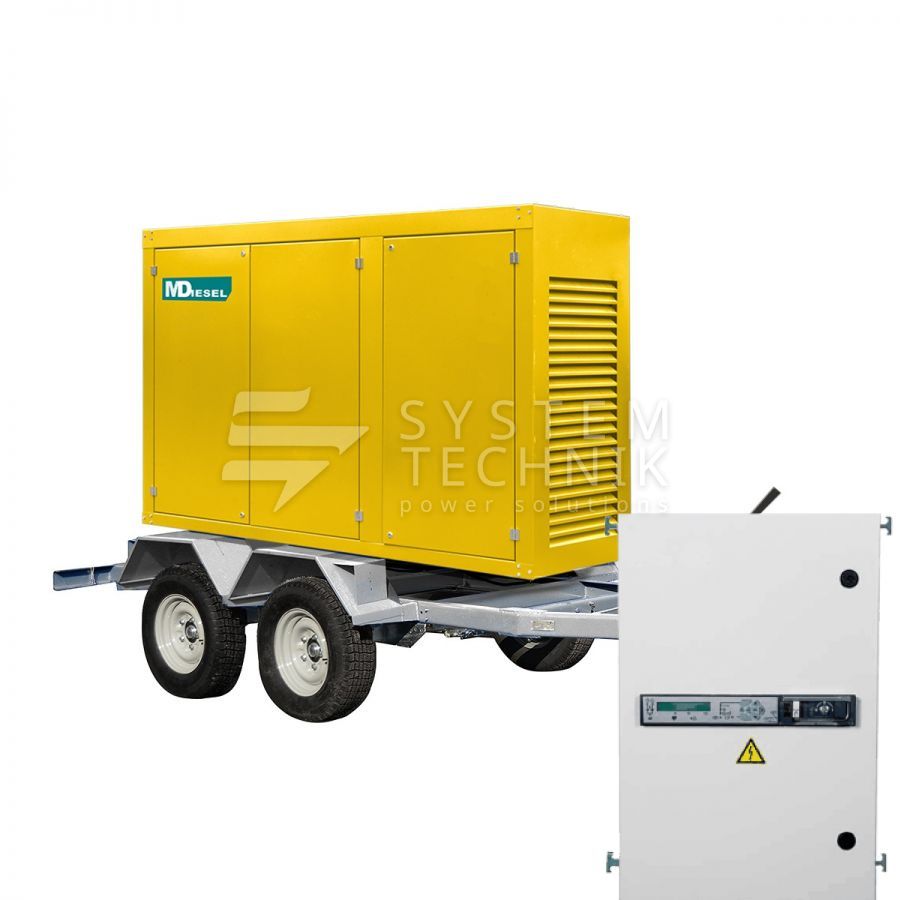 - MitsuDiesel МД ЭД-16-Т400-2РПМ29 в погодозащитном кожухе на шасси с АВР на прицепе