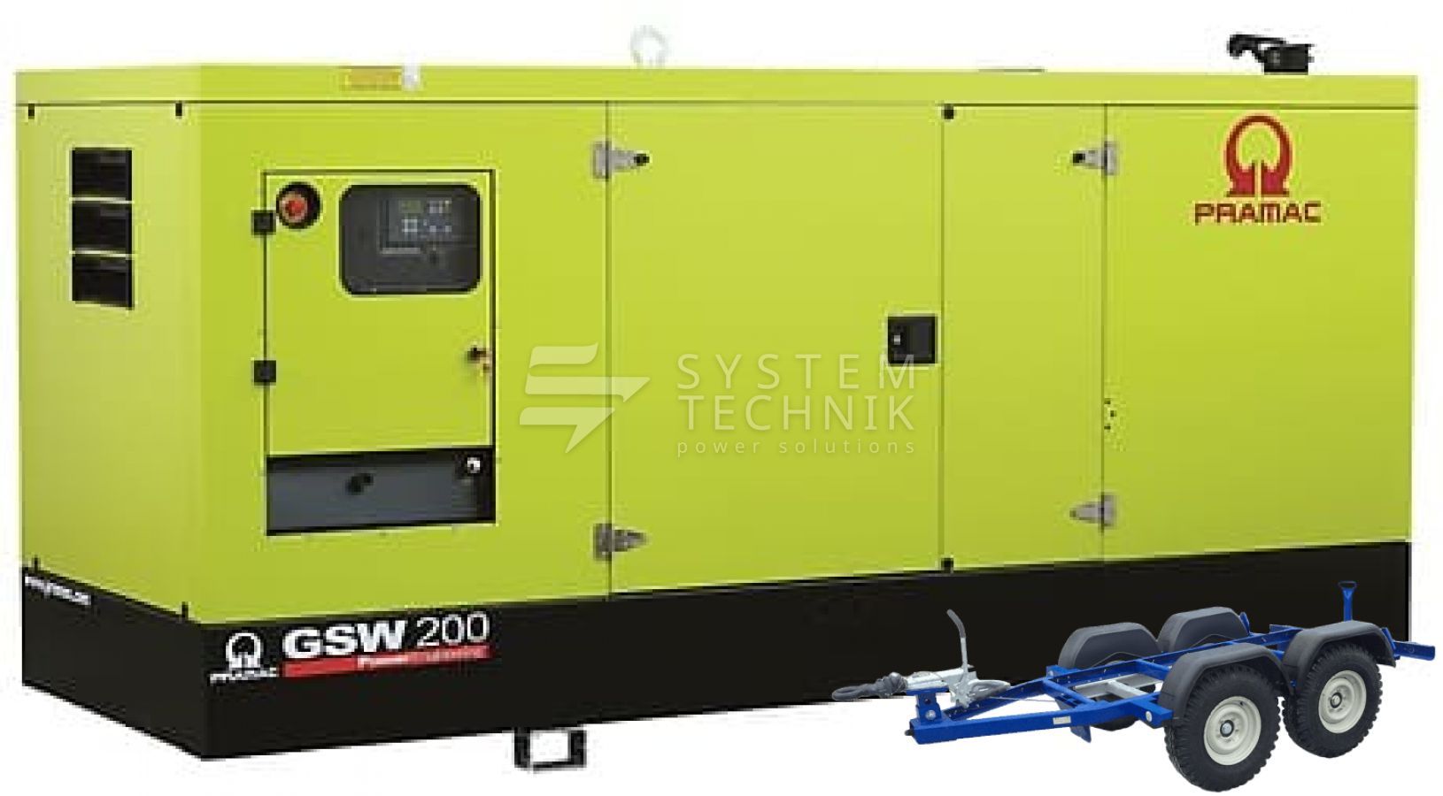 - Дизельный генератор Pramac GSW 200 P 400V В кожухе на прицепе