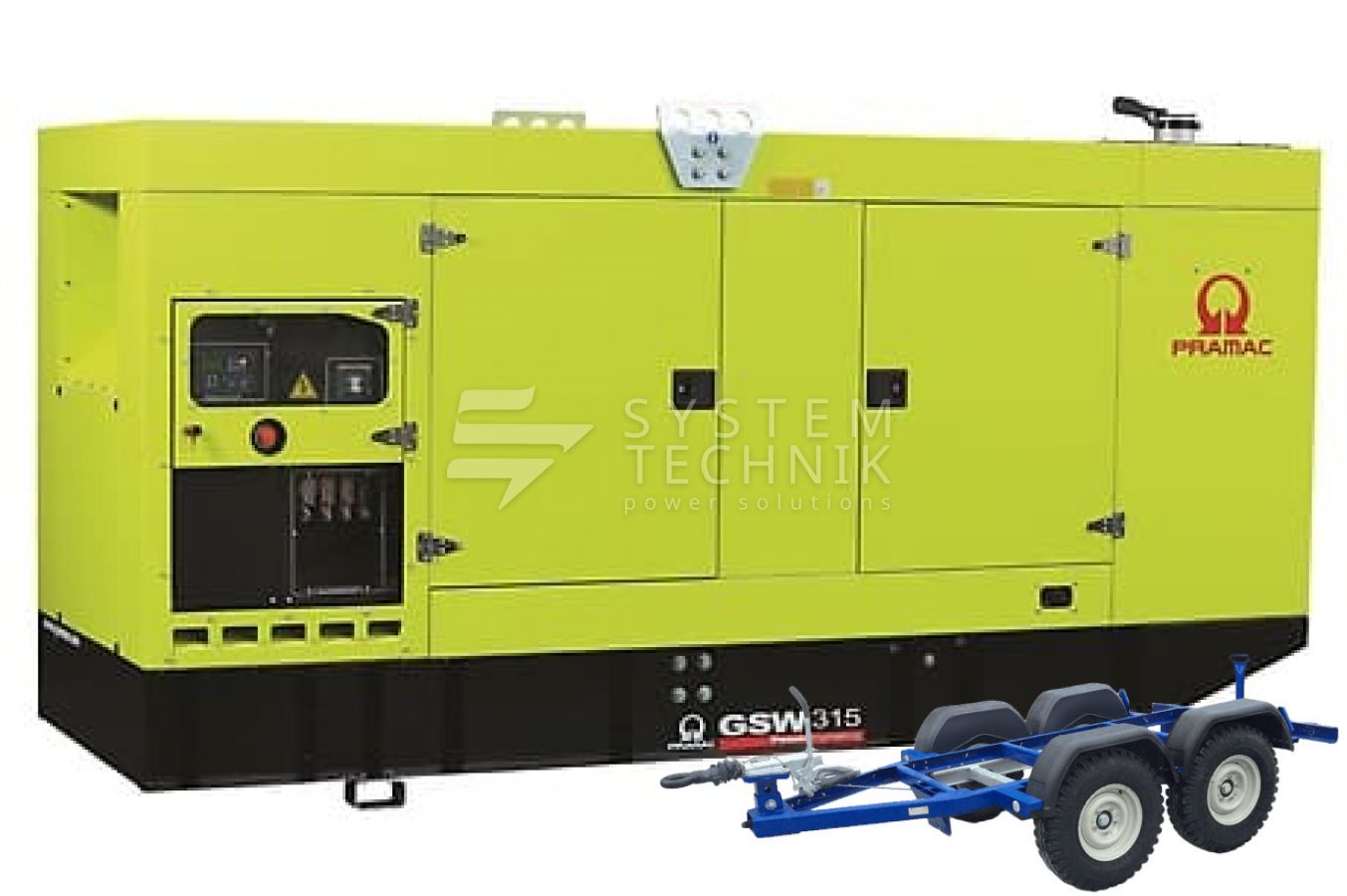 Дизельный генератор Pramac GSW 315 P 400V(ALT. LS) В кожухе на прицепе