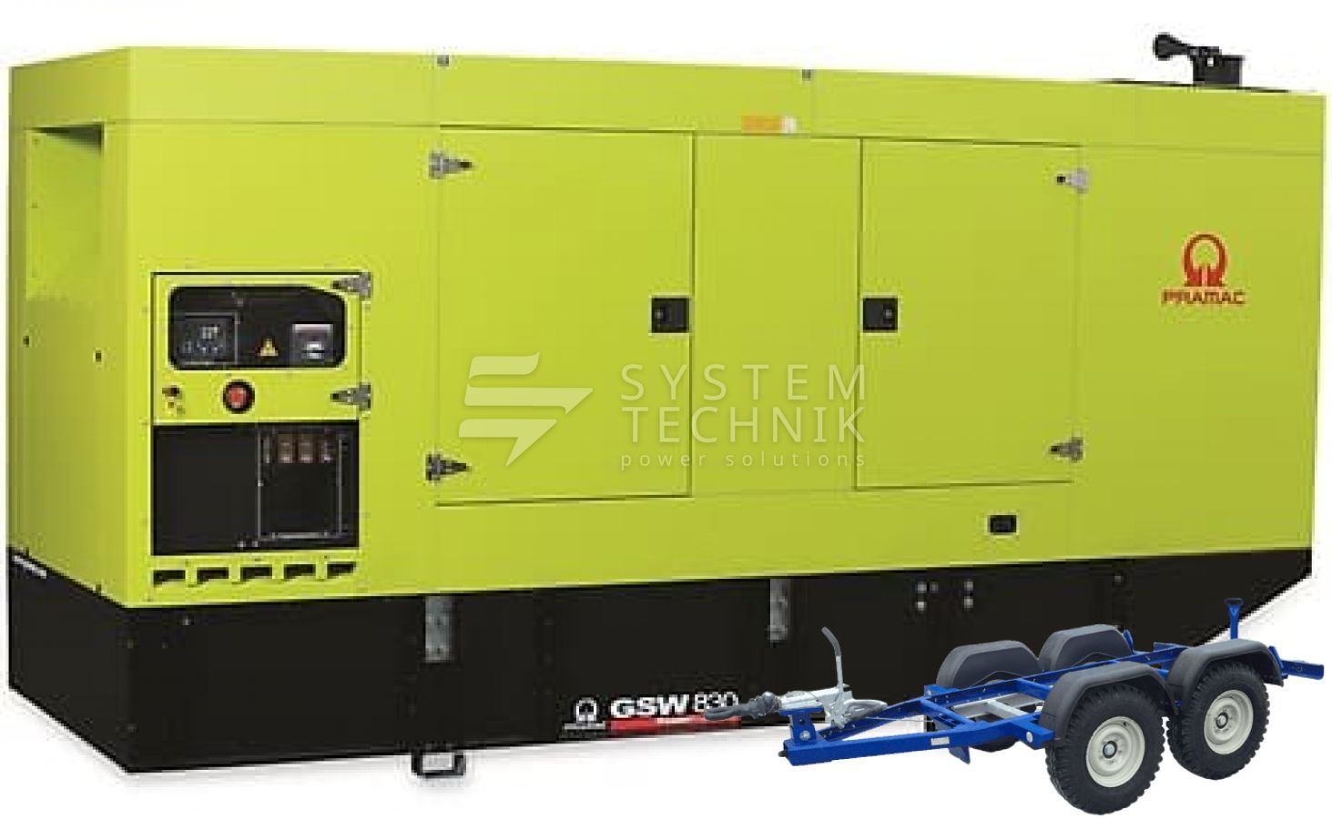 - Дизельный генератор Pramac GSW 830 DO 480V В кожухе на прицепе