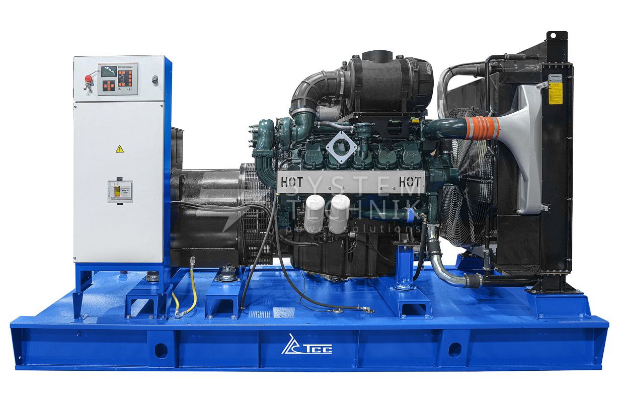 Категории товара: Дизельные генераторы 500 кВт ДГУ открытого типа Трехфазные дизельные генераторы Дизель-генераторы ТСС АД 500С Т400